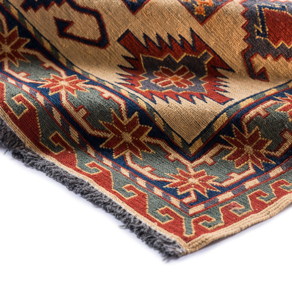 Chobi Kilims are handwoven from the finest sheep wool native to Afghanistan. They are dyed using natural vegetable dyes, washed using herbal soaps, and finally dried in natural sunlight.