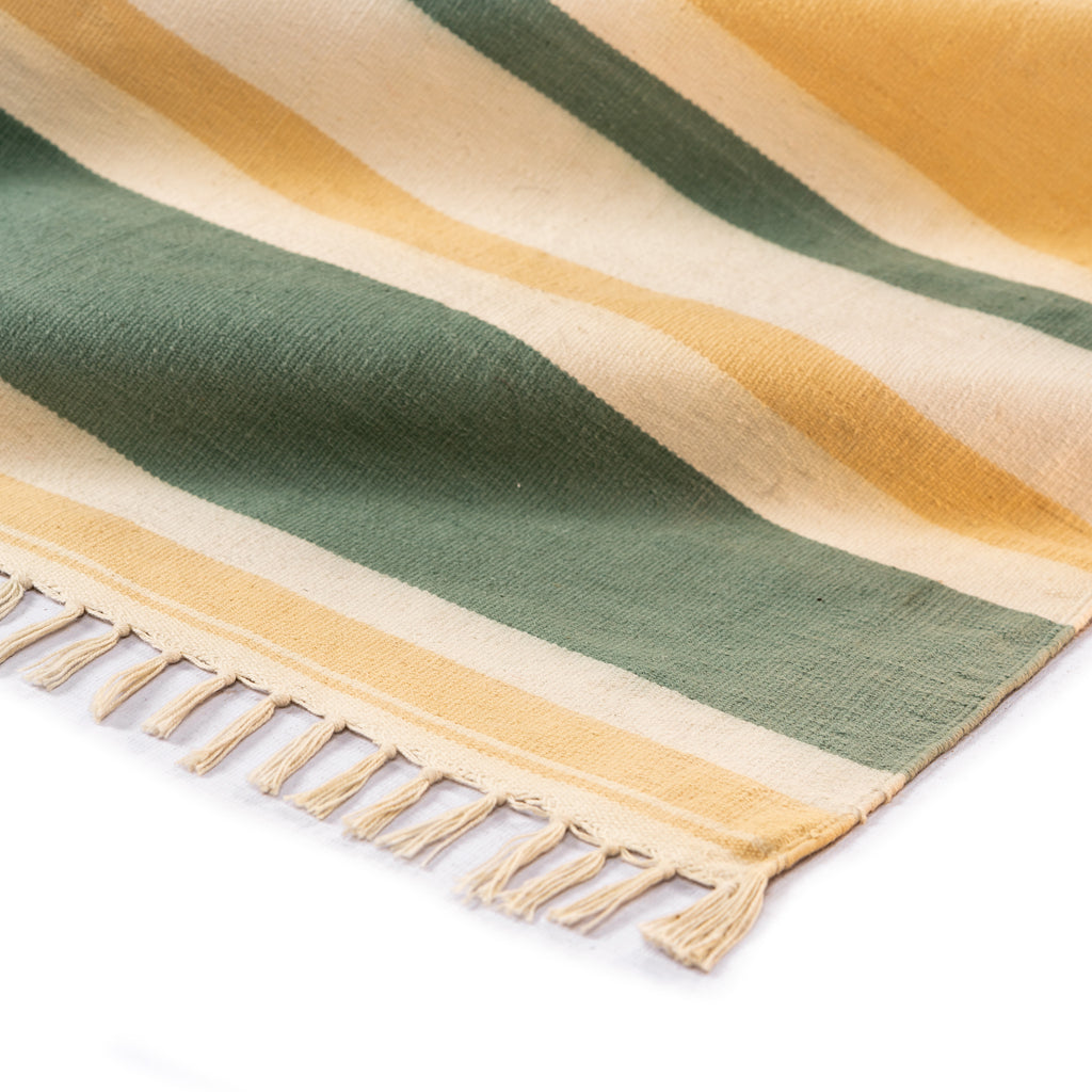 Dhurries are lightweight, reversible, and foldable, making them portable and easy to use. Handwoven by artisan weavers of Punjab, Pakistan using a unique hand-weaving style, these rugs come in an assortment of color combinations and patterns, varying from simple to intricate geometrical patterns, catering to any taste or occasion. Cotton Dhurries can be used year-round, staying warm in winters and cool during summers.
