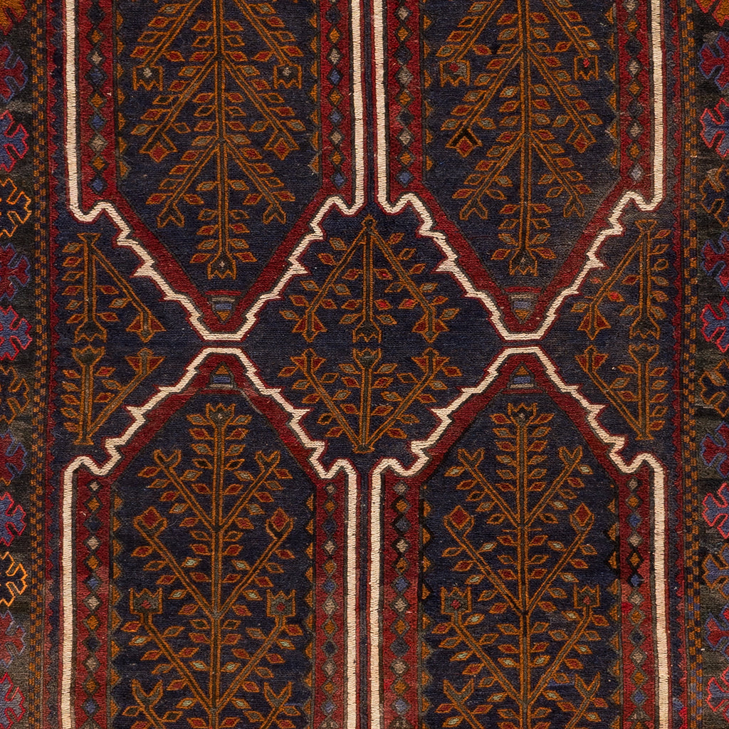 Handmade by the nomadic tribes of Afghanistan, Golbarjasta Kilims are particularly impressive due to their beautiful floral patterns, cut into the rug’s pile in relief. Golbarjasta Kilims also contain knotted details, which creates an exciting, raised surface on the rug, giving it an exceptionally detailed look. Its earthy colors make it suitable for most homes.
