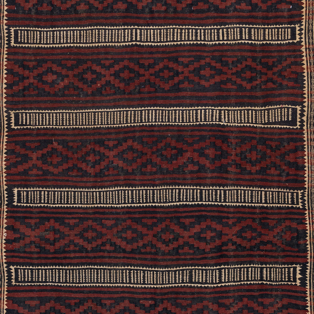Handmade by the nomadic tribes of Afghanistan, Golbarjasta Kilims are particularly impressive due to their beautiful floral patterns, cut into the rug’s pile in relief. Golbarjasta Kilims also contain knotted details, which creates an exciting, raised surface on the rug, giving it an exceptionally detailed look. Its earthy colors make it suitable for most homes.