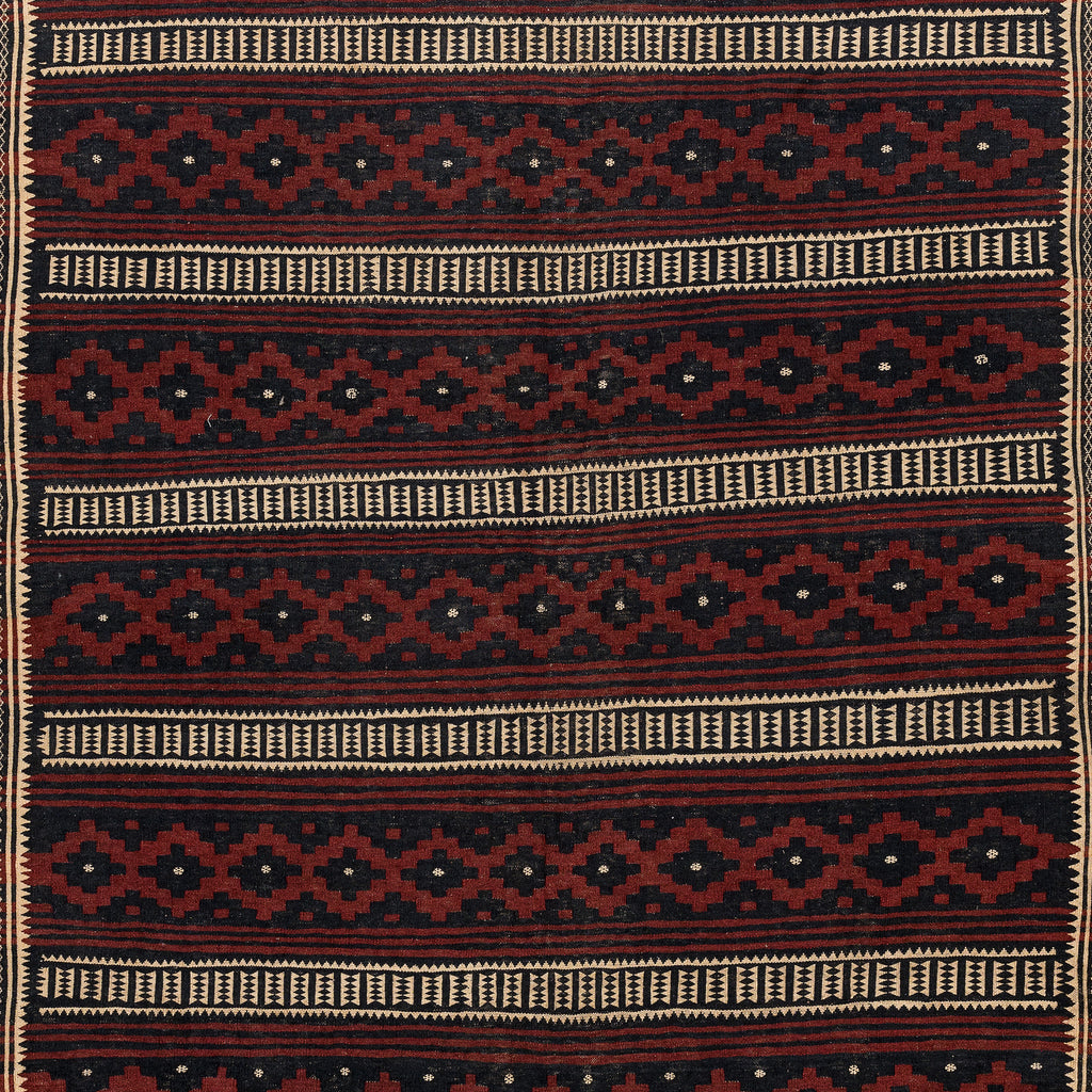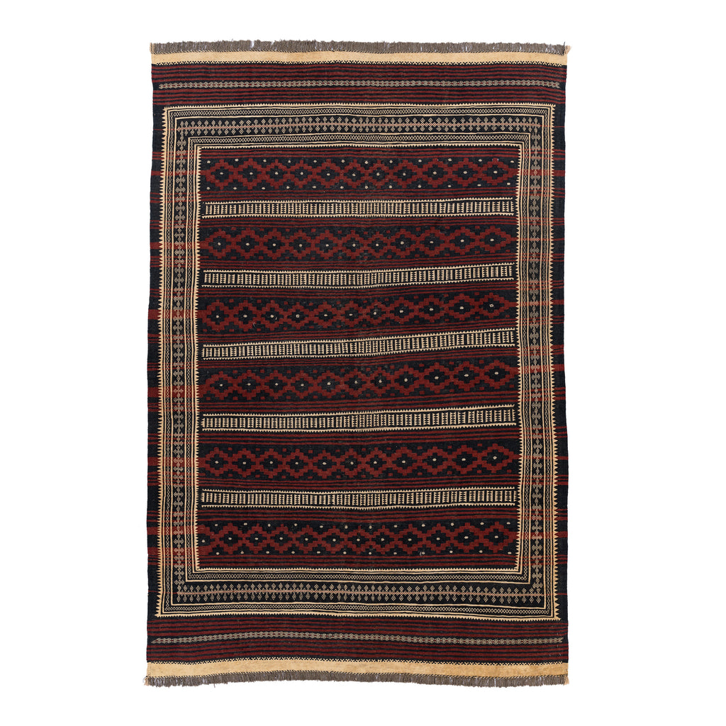 Handmade by the nomadic tribes of Afghanistan, Golbarjasta Kilims are particularly impressive due to their beautiful floral patterns, cut into the rug’s pile in relief. Golbarjasta Kilims also contain knotted details, which creates an exciting, raised surface on the rug, giving it an exceptionally detailed look. Its earthy colors make it suitable for most homes.