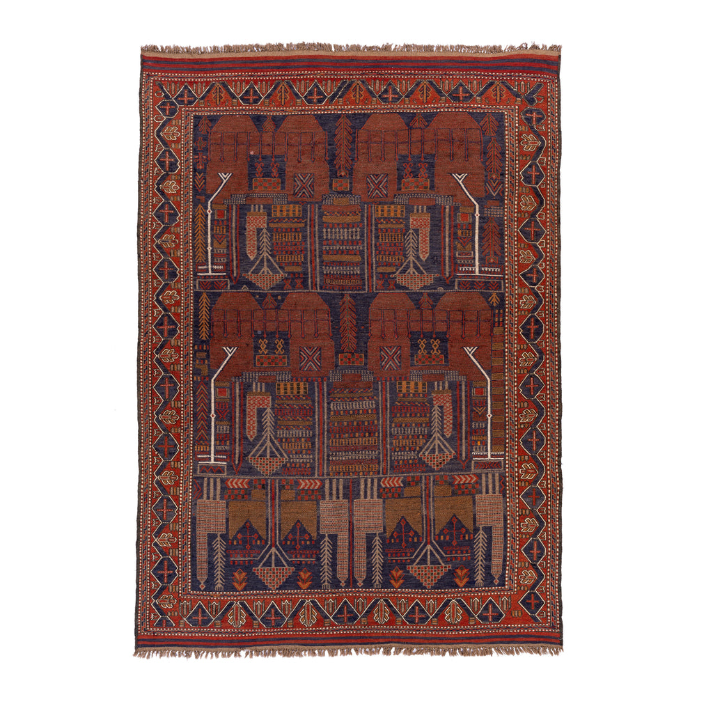 Handmade by the nomadic tribes of Afghanistan, Golbarjasta Kilims are particularly impressive due to their beautiful floral patterns, cut into the rug’s pile in relief. Golbarjasta Kilims also contain knotted details, which creates an exciting, raised surface on the rug, giving it an exceptionally detailed look. Its earthy colors make it suitable for most homes.