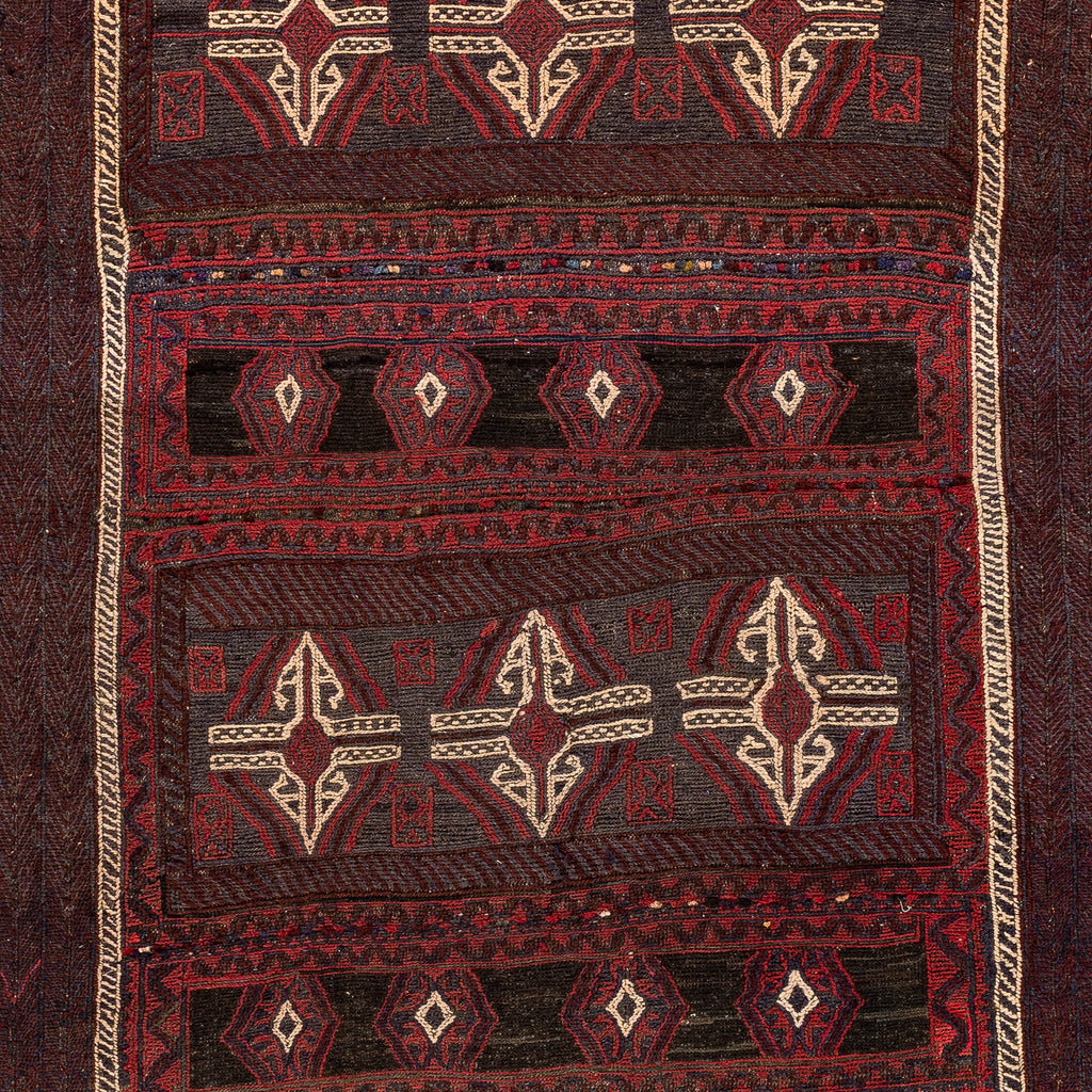 Handmade by the nomadic tribes of Afghanistan, Golbarjasta Kilims are particularly impressive due to their beautiful floral patterns, cut into the rug’s pile in relief. Golbarjasta Kilims also contain knotted details, which creates an exciting, raised surface on the rug, giving it an exceptionally detailed look. Its earthy colors make it suitable for most homes.