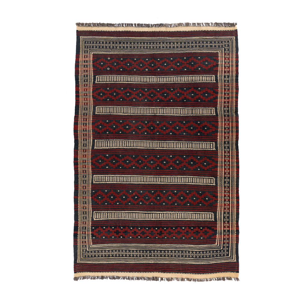 Handmade by the nomadic tribes of Afghanistan, Golbarjasta Kilims are particularly impressive due to their beautiful floral patterns, cut into the rug’s pile in relief. Golbarjasta Kilims also contain knotted details, which creates an exciting, raised surface on the rug, giving it an exceptionally detailed look. Its earthy colors make it suitable for most homes.