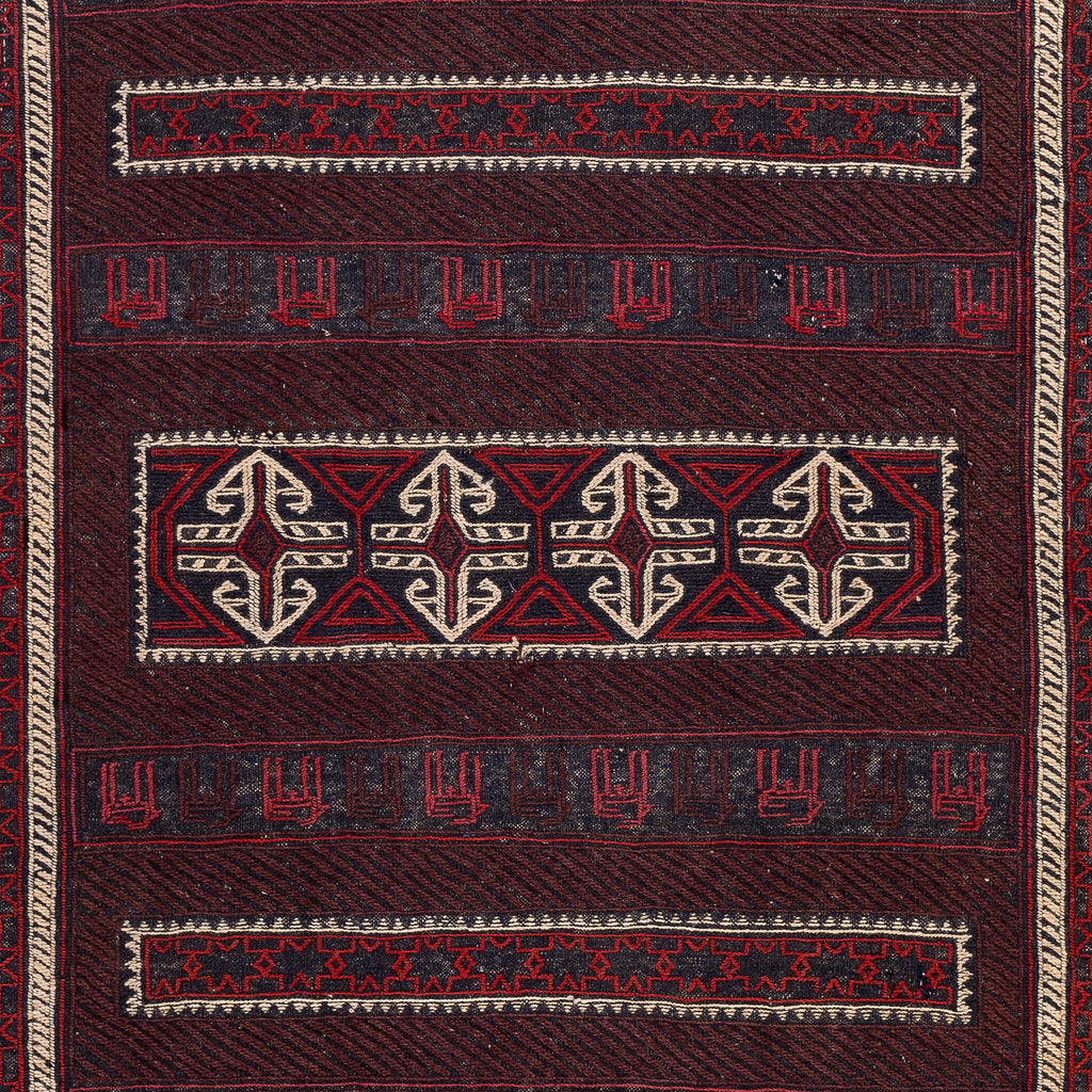 Handmade by the nomadic tribes of Afghanistan, Golbarjasta Kilims are particularly impressive due to their beautiful floral patterns, cut into the rug’s pile in relief. Golbarjasta Kilims also contain knotted details, which creates an exciting, raised surface on the rug, giving it an exceptionally detailed look. Its earthy colors make it suitable for most homes.