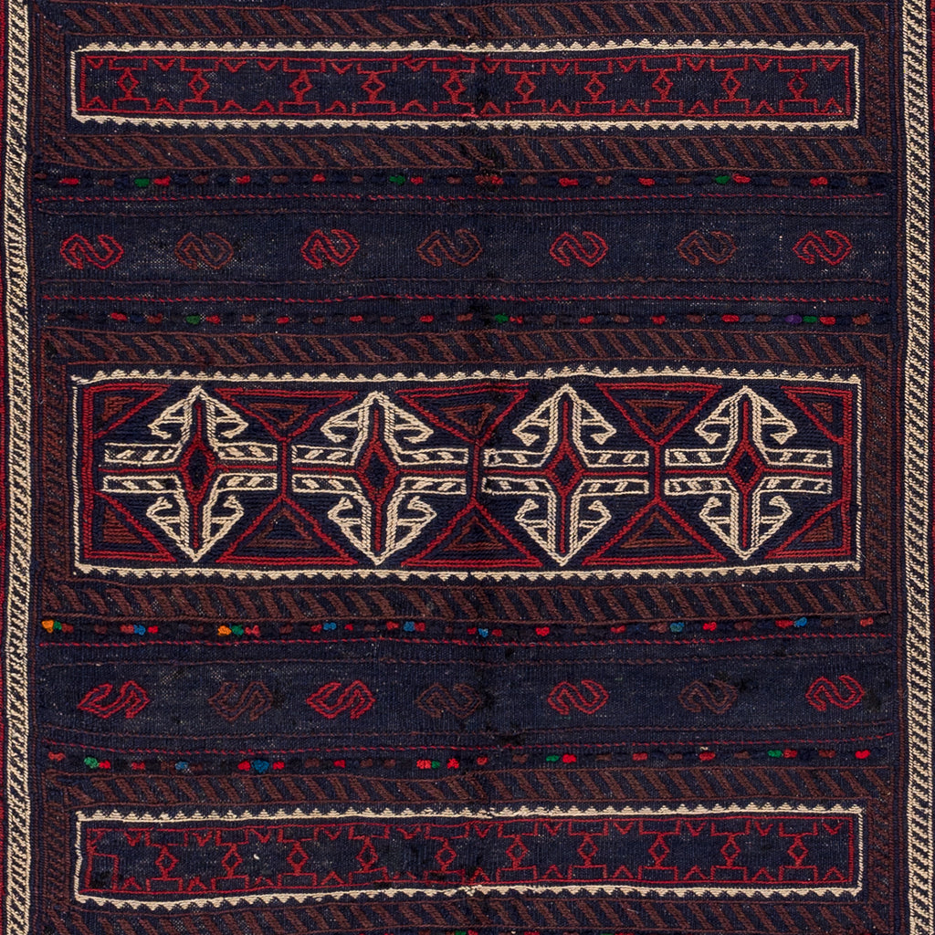 Handmade by the nomadic tribes of Afghanistan, Golbarjasta Kilims are particularly impressive due to their beautiful floral patterns, cut into the rug’s pile in relief. Golbarjasta Kilims also contain knotted details, which creates an exciting, raised surface on the rug, giving it an exceptionally detailed look. Its earthy colors make it suitable for most homes.