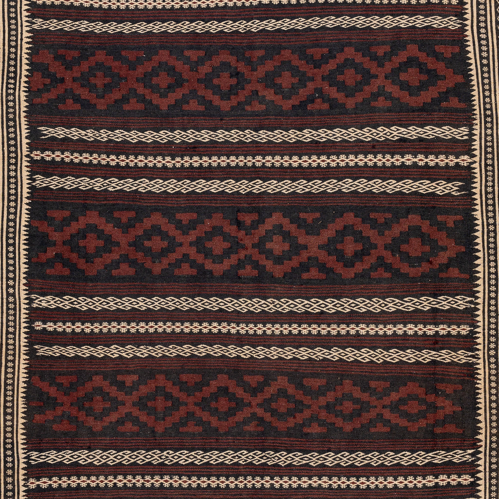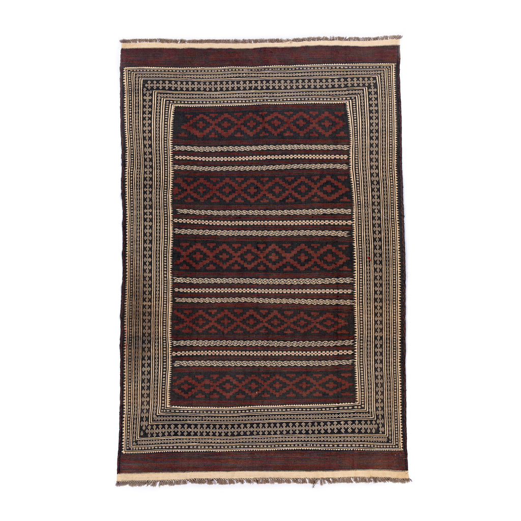 Handmade by the nomadic tribes of Afghanistan, Golbarjasta Kilims are particularly impressive due to their beautiful floral patterns, cut into the rug’s pile in relief. Golbarjasta Kilims also contain knotted details, which creates an exciting, raised surface on the rug, giving it an exceptionally detailed look. Its earthy colors make it suitable for most homes.