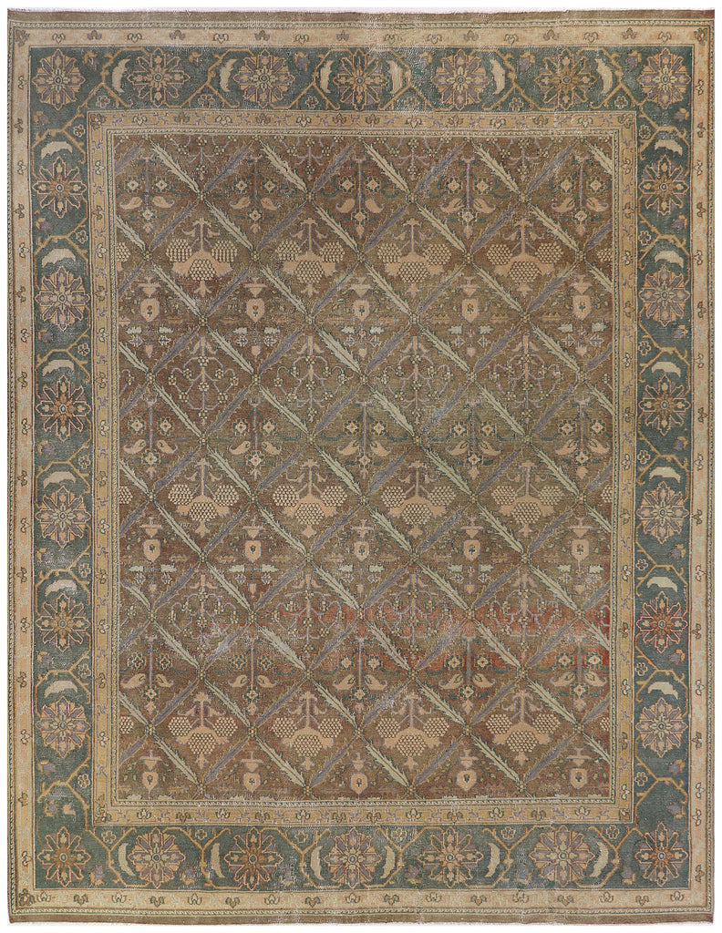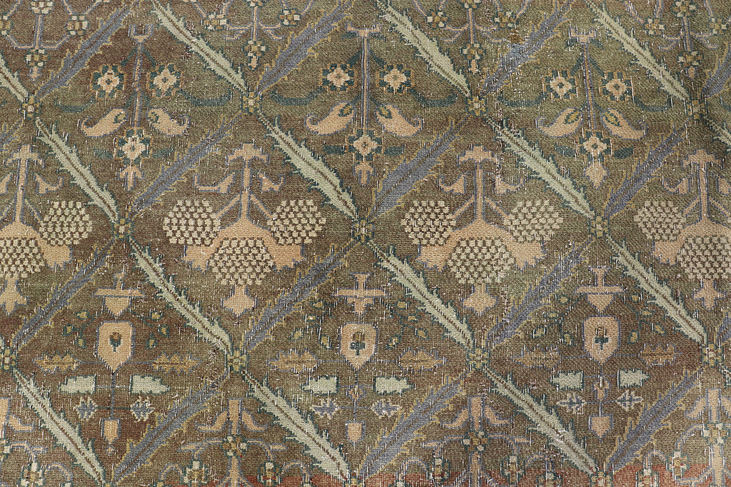 Most similar to the Sultanabads are Heriz and Serapi rugs; this similarity is attributed to the designs' magnificent graphic character. Yet within this similarity, Heriz/Serapis designs tend to be more curvilinear and classical. Sultanabads share with Persian rugs all-over designs of palmettes and vine scrolls, but as they use a larger, suppler weave, the Sultanabad designs tend to be larger.