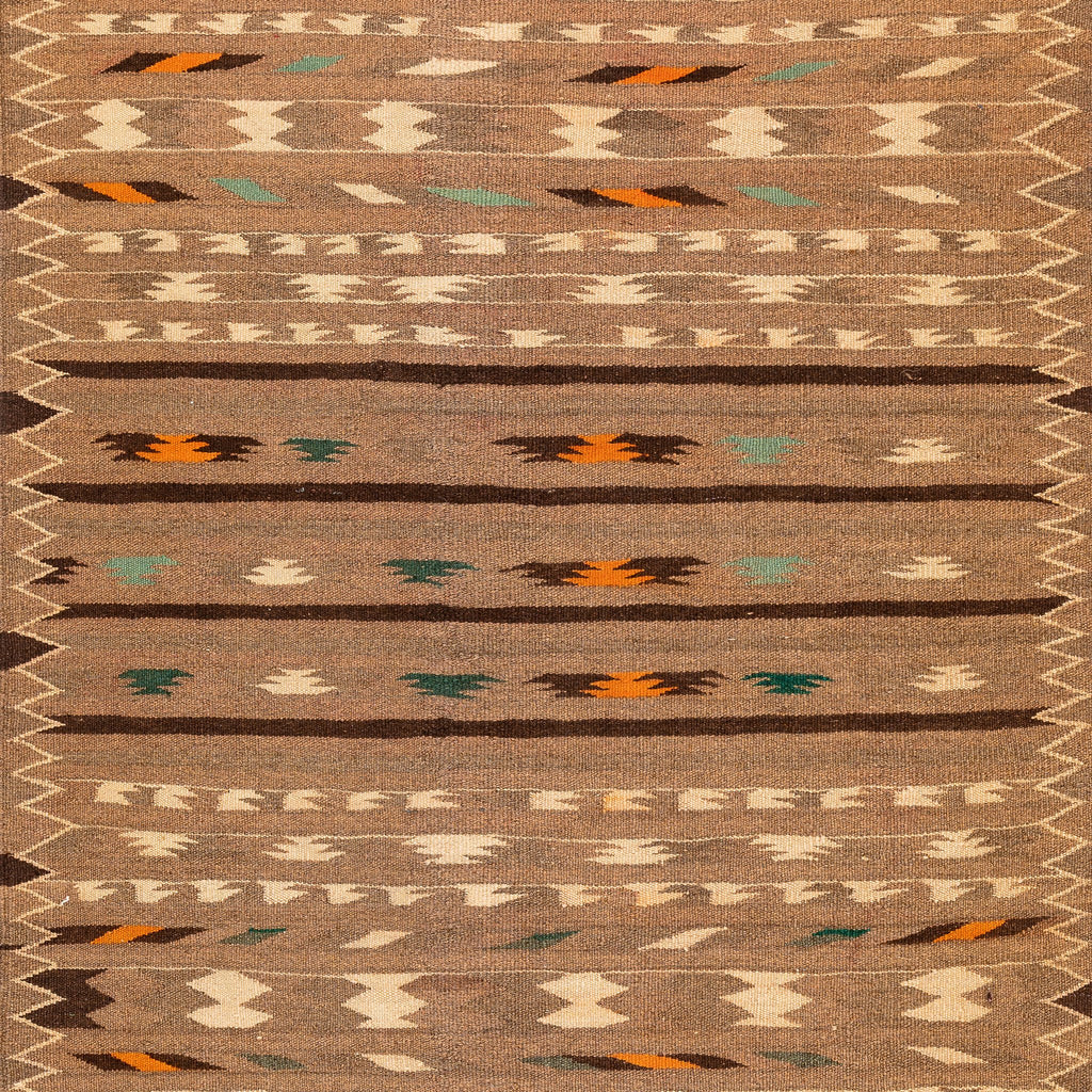 Turkmen Kilims are woven by the traditional desert nomads of Turkmenistan using durable local wool. A unique weaving technique is used, which allows thinner carpets to be produced with the same motif on both sides, making them reversible. Turkmen Kilims usually have often geometric designs as the weaving technique implies certain limitations, resulting in a banded pattern. They are produced from good quality wool and will help you give your home an Oriental feel.