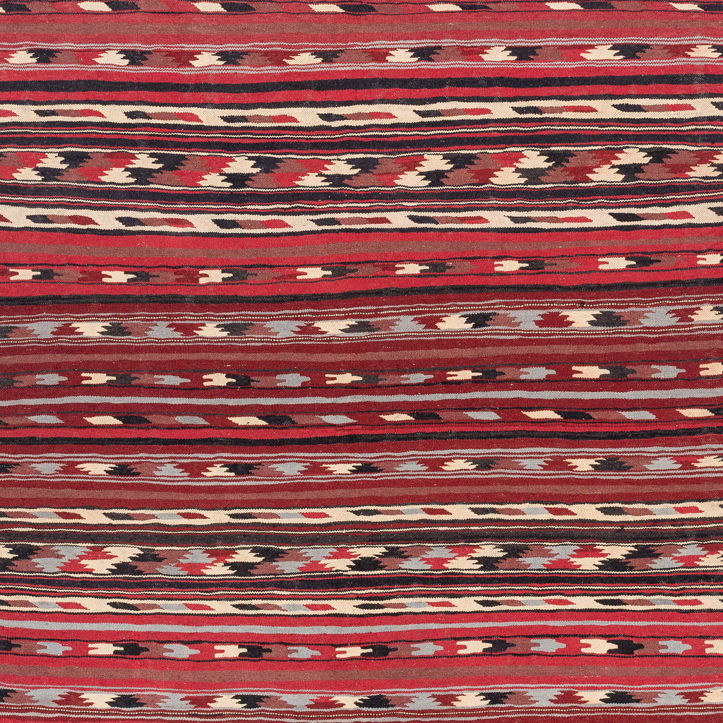 Turkmen Kilims are woven by the traditional desert nomads of Turkmenistan using durable local wool. A unique weaving technique is used, which allows thinner carpets to be produced with the same motif on both sides, making them reversible. Turkmen Kilims usually have often geometric designs as the weaving technique implies certain limitations, resulting in a banded pattern. They are produced from good quality wool and will help you give your home an Oriental feel.