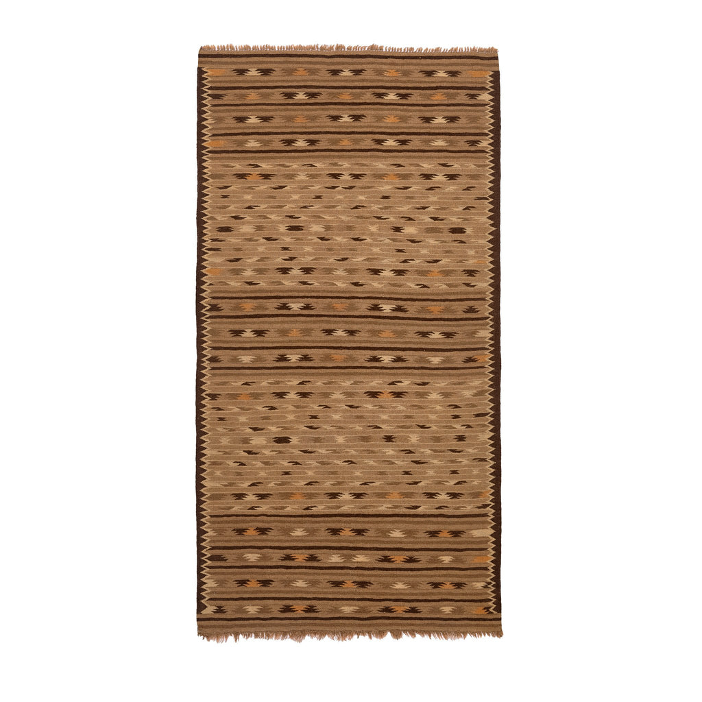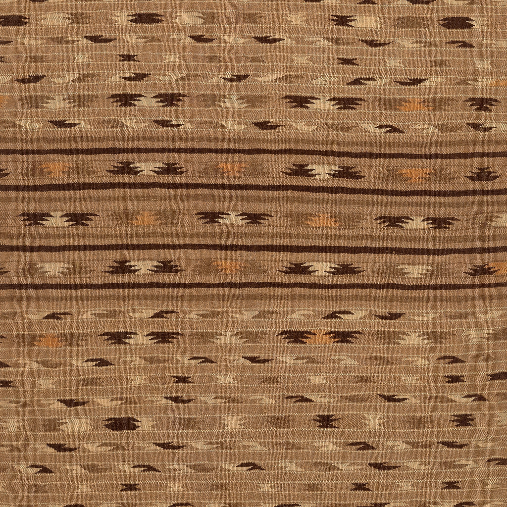Turkmen Kilims are woven by the traditional desert nomads of Turkmenistan using durable local wool. A unique weaving technique is used, which allows thinner carpets to be produced with the same motif on both sides, making them reversible. Turkmen Kilims usually have often geometric designs as the weaving technique implies certain limitations, resulting in a banded pattern. They are produced from good quality wool and will help you give your home an Oriental feel.