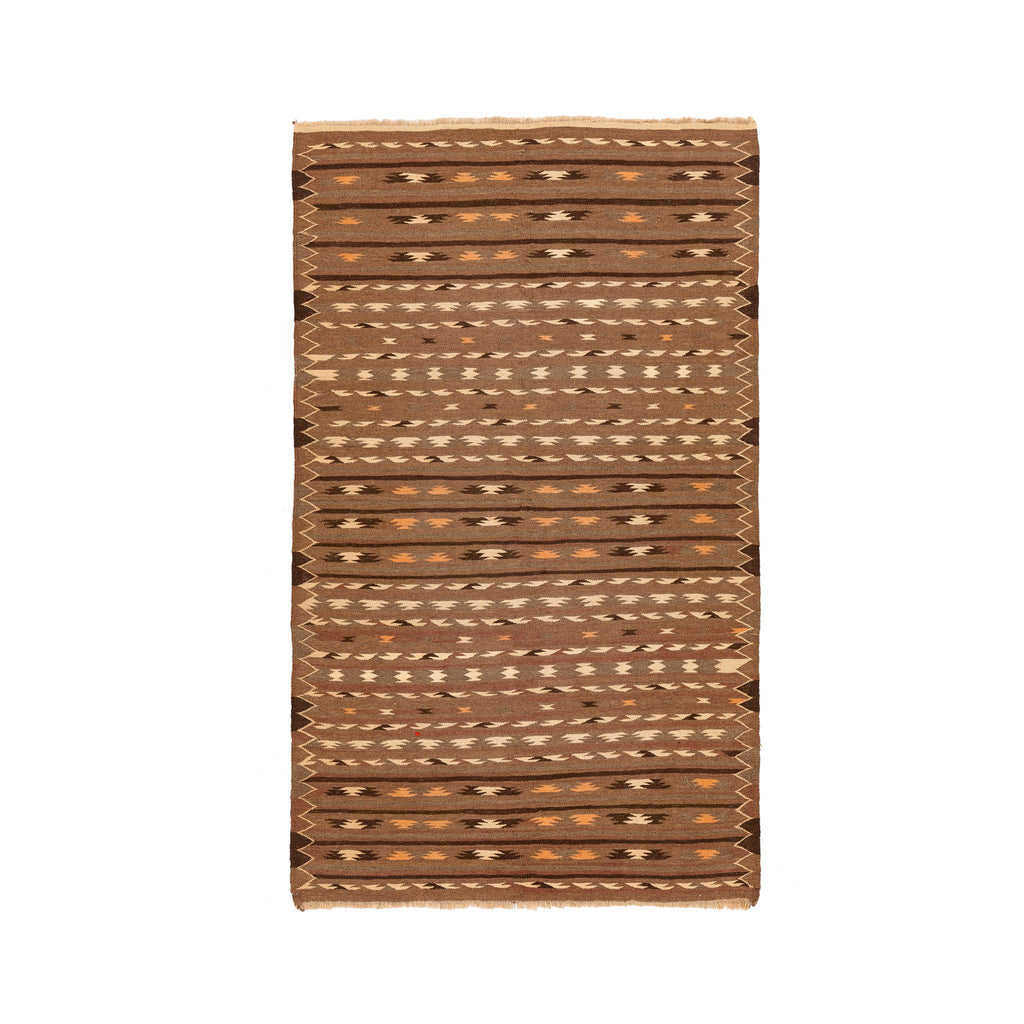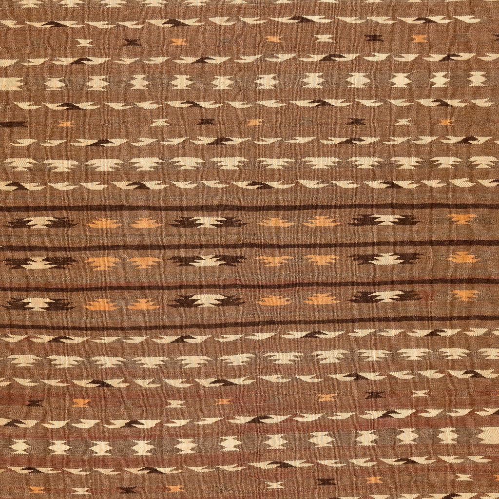 Turkmen Kilims are woven by the traditional desert nomads of Turkmenistan using durable local wool. A unique weaving technique is used, which allows thinner carpets to be produced with the same motif on both sides, making them reversible. Turkmen Kilims usually have often geometric designs as the weaving technique implies certain limitations, resulting in a banded pattern. They are produced from good quality wool and will help you give your home an Oriental feel.
