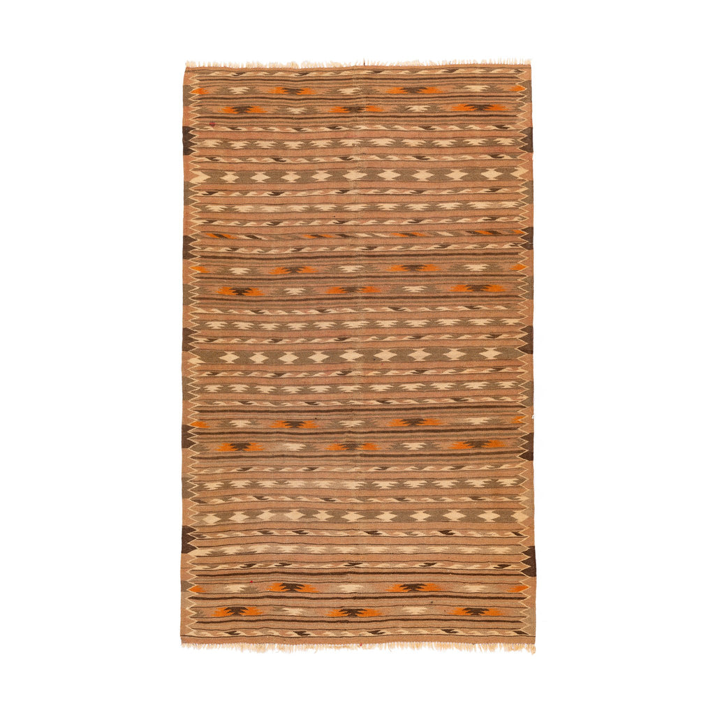 are woven by the traditional desert nomads of Turkmenistan using durable local wool. A unique weaving technique is used, which allows thinner carpets to be produced with the same motif on both sides, making them reversible. Turkmen Kilims usually have often geometric designs as the weaving technique implies certain limitations, resulting in a banded pattern. They are produced from good quality wool and will help you give your home an Oriental feel.