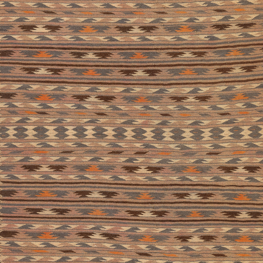 Turkmen Kilims are woven by the traditional desert nomads of Turkmenistan using durable local wool. A unique weaving technique is used, which allows thinner carpets to be produced with the same motif on both sides, making them reversible. Turkmen Kilims usually have often geometric designs as the weaving technique implies certain limitations, resulting in a banded pattern. They are produced from good quality wool and will help you give your home an Oriental feel.