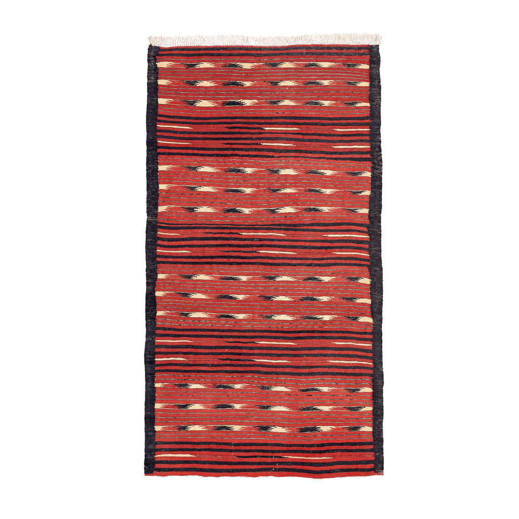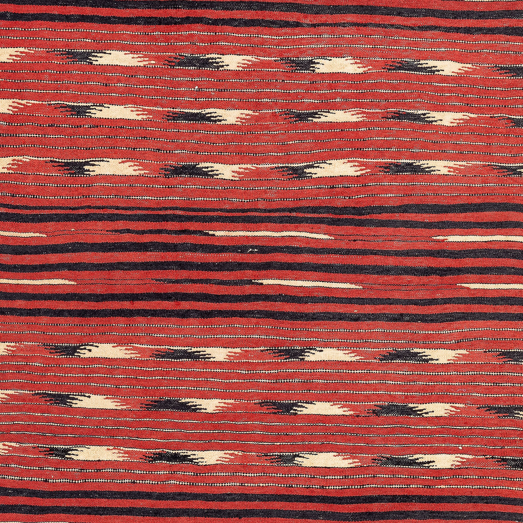 Turkmen Kilims are woven by the traditional desert nomads of Turkmenistan using durable local wool. A unique weaving technique is used, which allows thinner carpets to be produced with the same motif on both sides, making them reversible. Turkmen Kilims usually have often geometric designs as the weaving technique implies certain limitations, resulting in a banded pattern. They are produced from good quality wool and will help you give your home an Oriental feel.