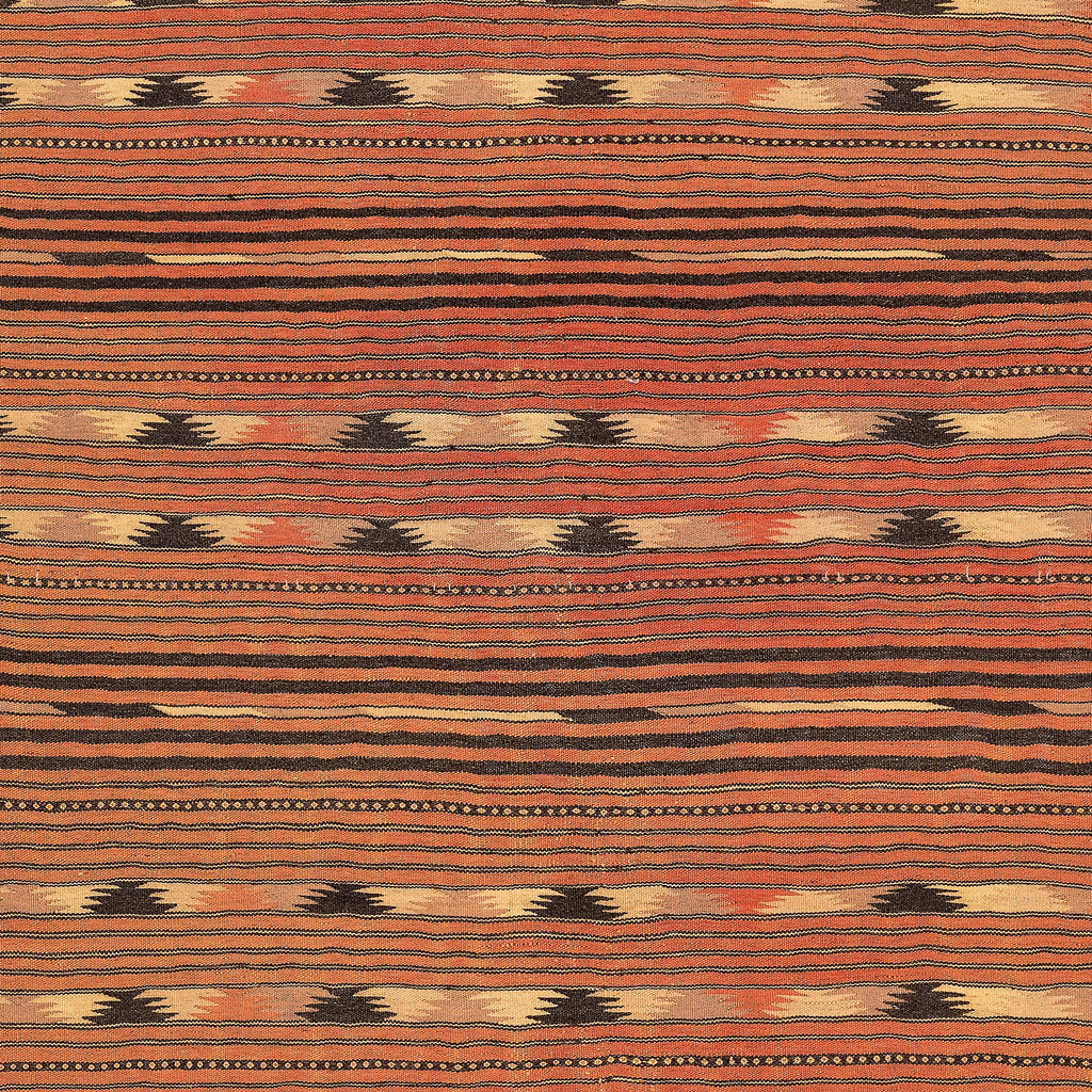 Turkmen Kilims are woven by the traditional desert nomads of Turkmenistan using durable local wool. A unique weaving technique is used, which allows thinner carpets to be produced with the same motif on both sides, making them reversible. Turkmen Kilims usually have often geometric designs as the weaving technique implies certain limitations, resulting in a banded pattern. They are produced from good quality wool and will help you give your home an Oriental feel.