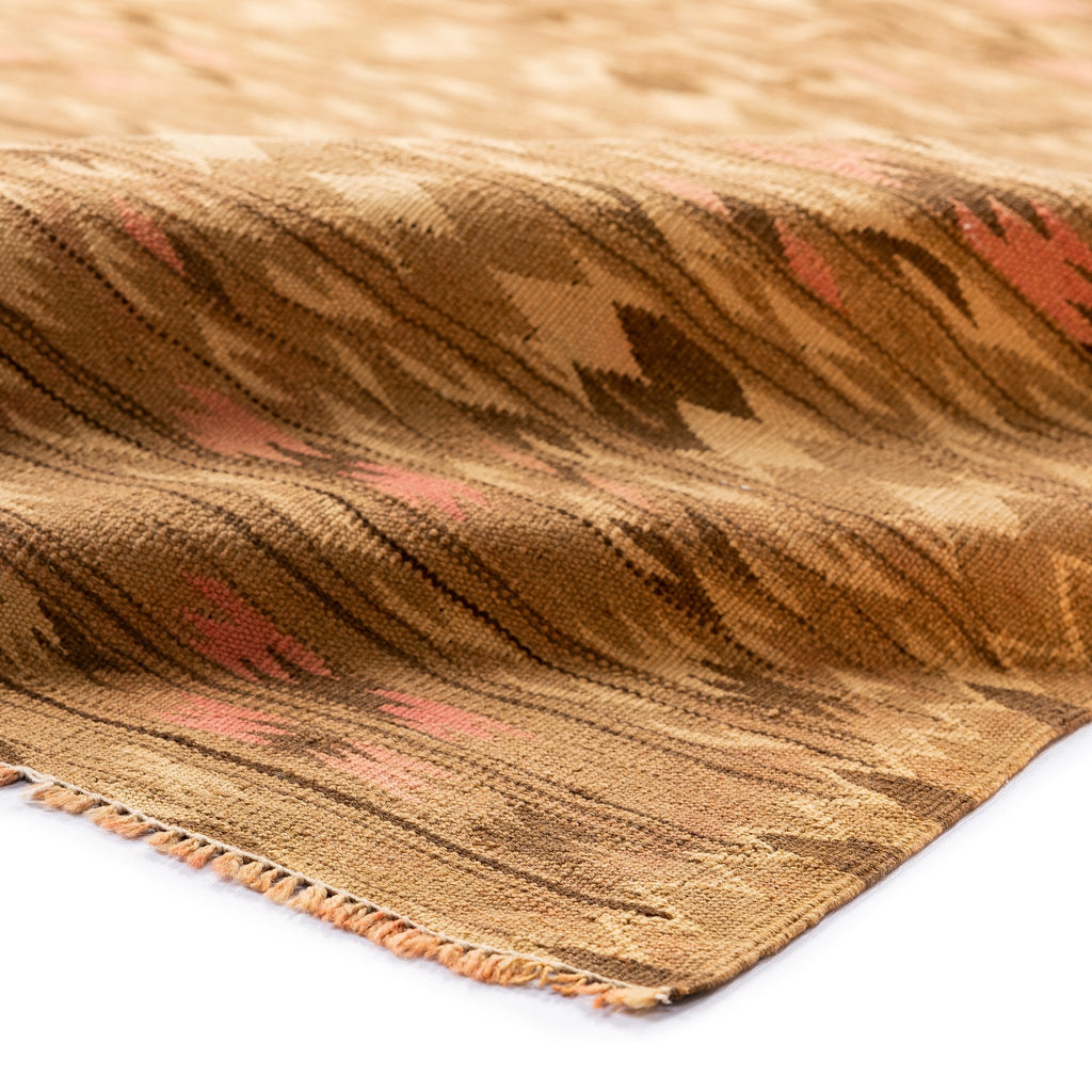 Turkmen Kilims are woven by the traditional desert nomads of Turkmenistan using durable local wool. A unique weaving technique is used, which allows thinner carpets to be produced with the same motif on both sides, making them reversible. Turkmen Kilims usually have often geometric designs as the weaving technique implies certain limitations, resulting in a banded pattern. They are produced from good quality wool and will help you give your home an Oriental feel.