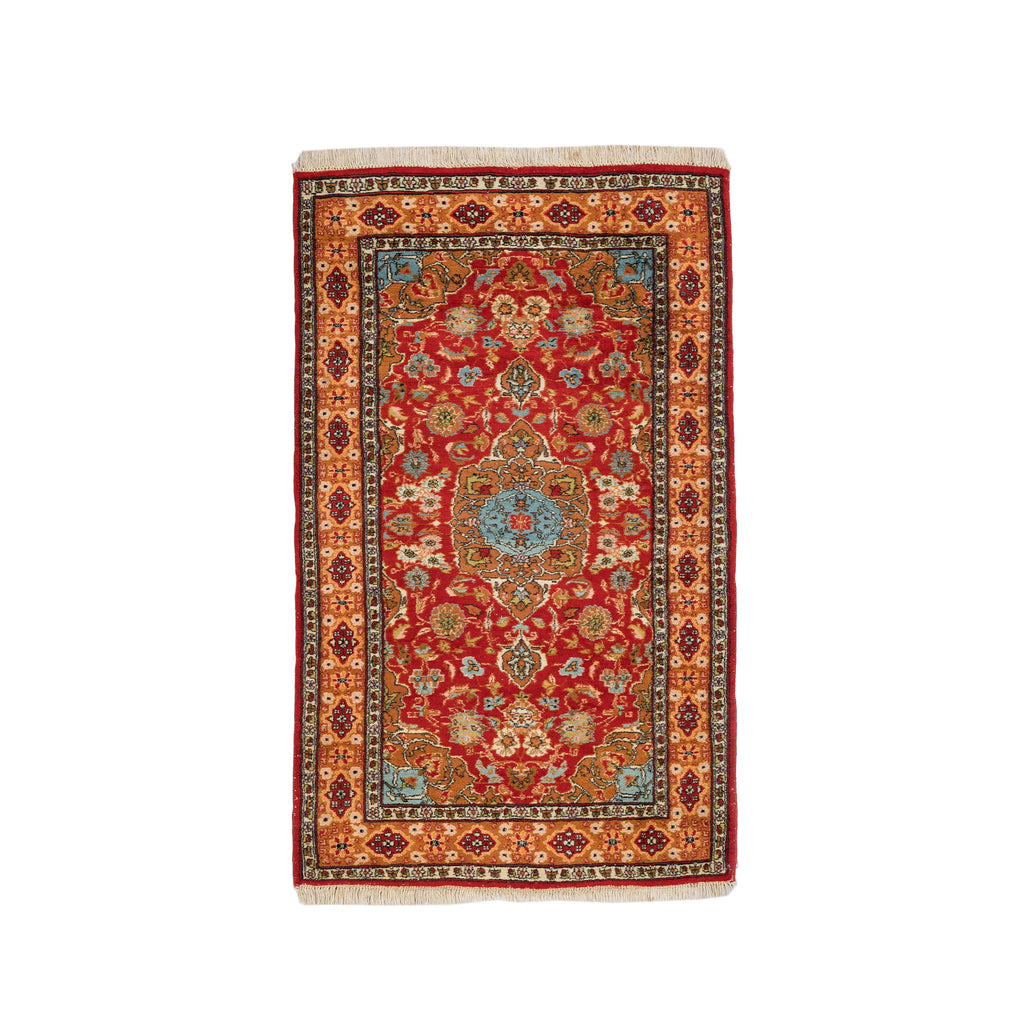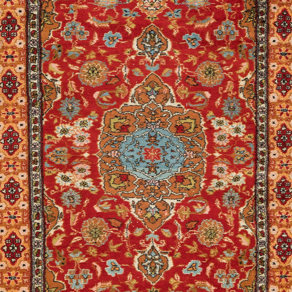 The carpets are manufactured with high knot density, warp, and weft of cotton, and the wool for the pile is of high quality. The patterns consist of beautifully designed medallions, niches, trees, and figural motifs, and all-over floral motifs occur also. Dominating colors are blue, red, and beige.