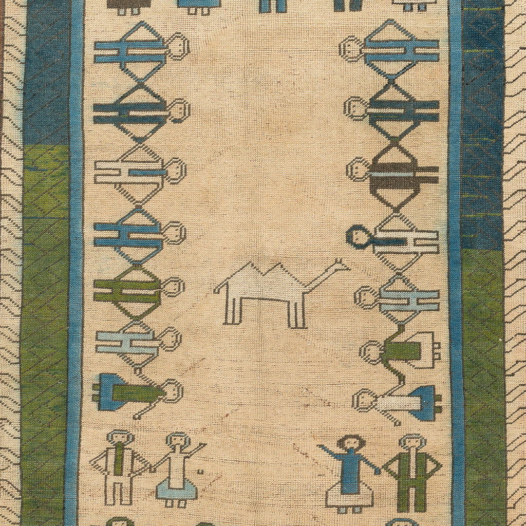 A Gabbeh rug displays playful simplicity in its design, with a limited number of decorative, mostly rectangular shapes resembling mainly animals. Usually, bright colors are used, such as yellow and red. Gabbehs are made of natural, handspun wool yarn, and all the colors are created with natural plant dye.
