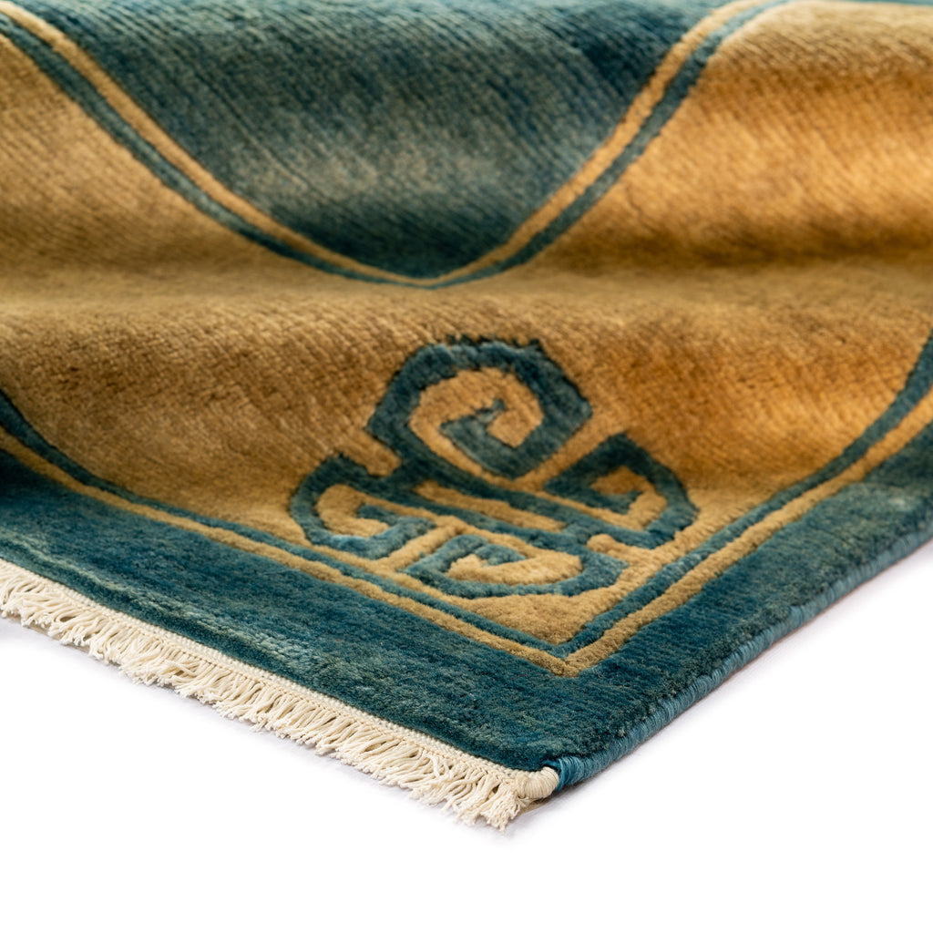 The designs on these Classical Chinese inspired carpets are taken from the patterns used by Chinese porcelain painters and artisans, which had been one of the favorite themes in Chinese crafts and paintings for centuries. The patterns also show old religious symbols with distinguished dragon patterns. The symbols on these carpets have Buddhistic origins, including clouds, floral designs, and ancient animals like dragons and phoenixes.