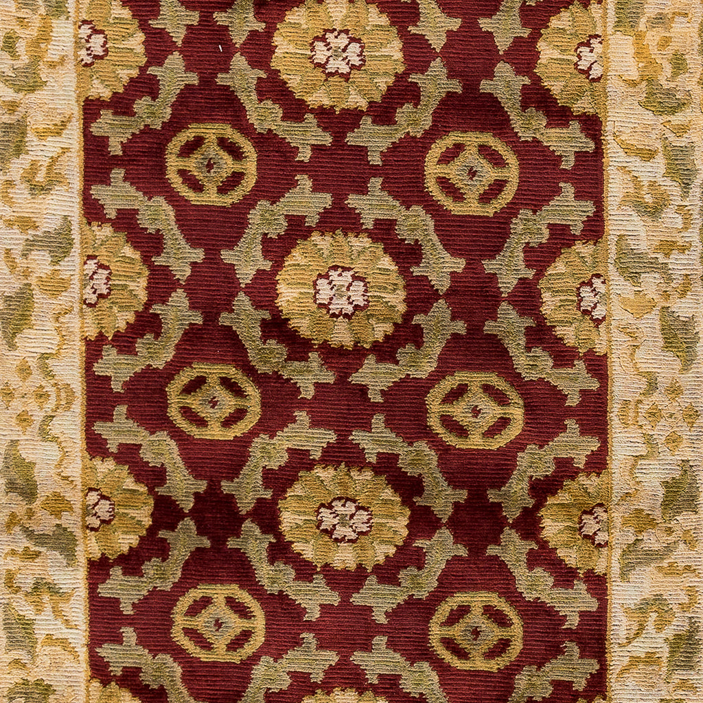 These rugs have an opaque and course texture. Motifs consist of simple geometric motifs such as the checkerboard and amulet design that formed part of an ancient Tibetan design repertoire, mingled with medallion designs and other motifs.