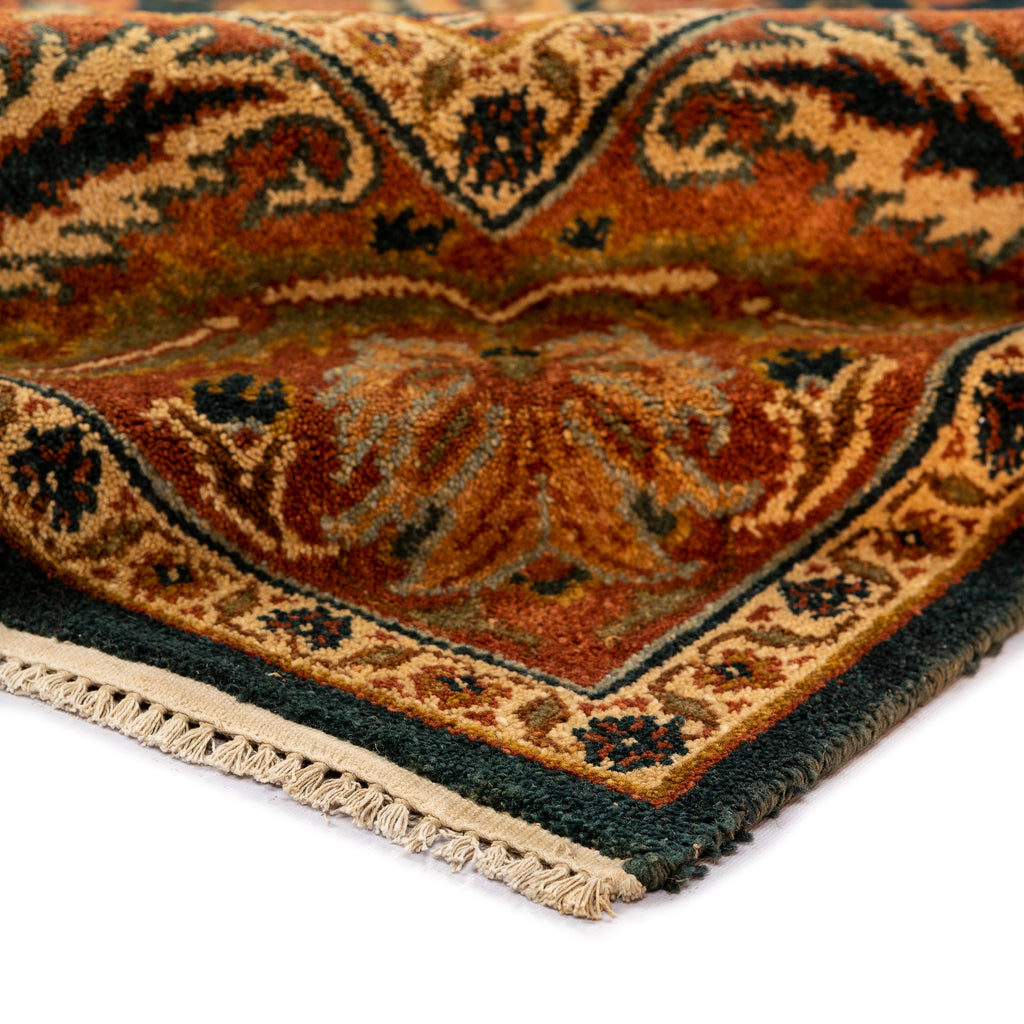 Most similar to the Sultanabads are Heriz and Serapi rugs; this similarity is attributed to the designs' magnificent graphic character. Yet within this similarity, Heriz/Serapis designs tend to be more curvilinear and classical. Sultanabads share with Persian rugs all-over designs of palmettes and vine scrolls, but as they use a larger, suppler weave, the Sultanabad designs tend to be larger.