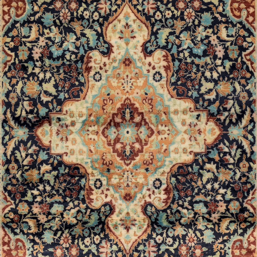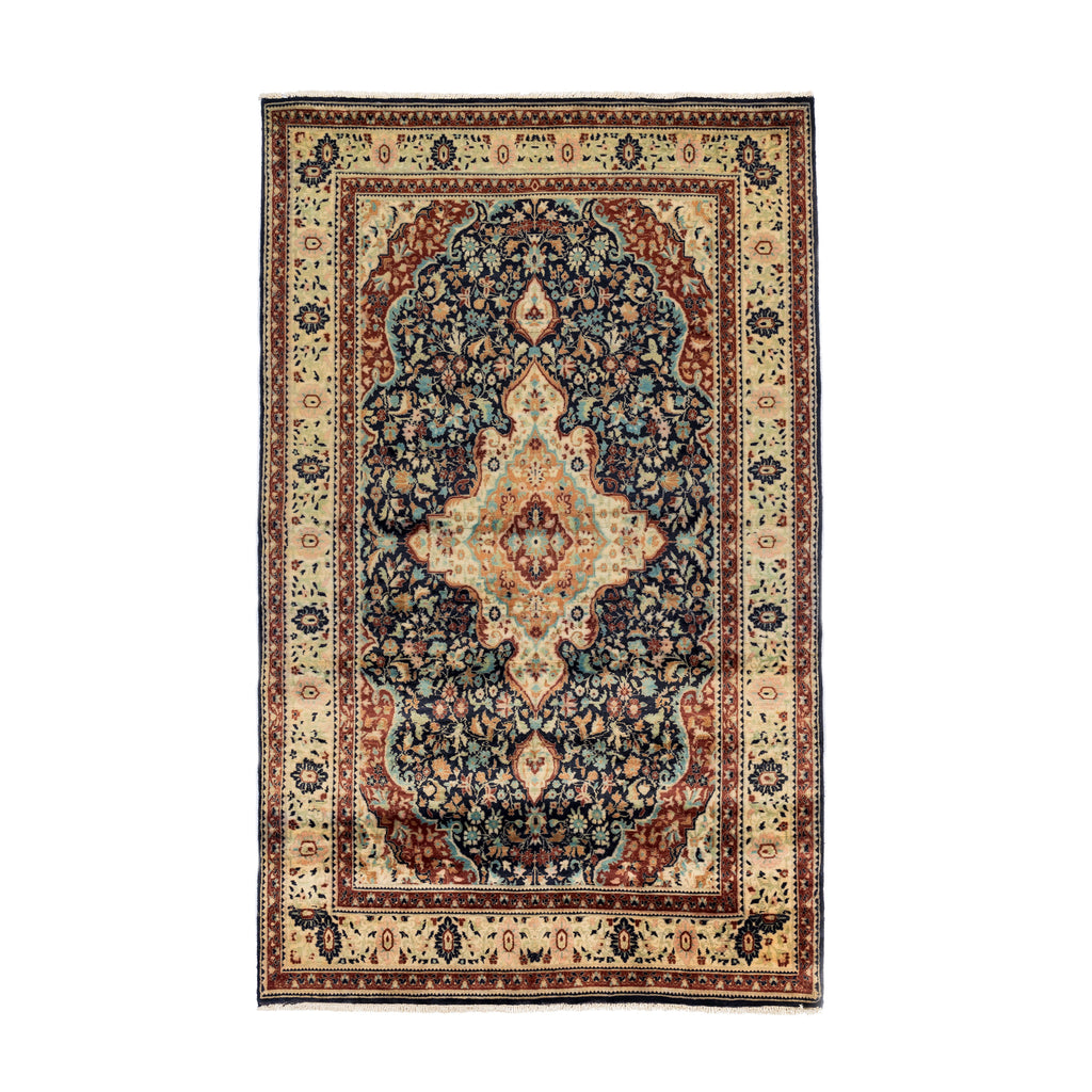 The carpets are manufactured with high knot density, warp, and weft of cotton, and the wool for the pile is of high quality. The patterns consist of beautifully designed medallions, niches, trees, and figural motifs, and all-over floral motifs occur also. Dominating colors are blue, red, and beige.