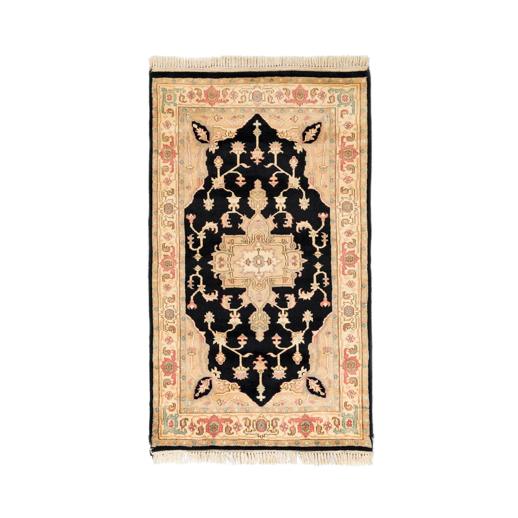 Most similar to the Sultanabads are Heriz and Serapi rugs; this similarity is attributed to the designs' magnificent graphic character. Yet within this similarity, Heriz/Serapis designs tend to be more curvilinear and classical. Sultanabads share with Persian rugs all-over designs of palmettes and vine scrolls, but as they use a larger, suppler weave, the Sultanabad designs tend to be larger.