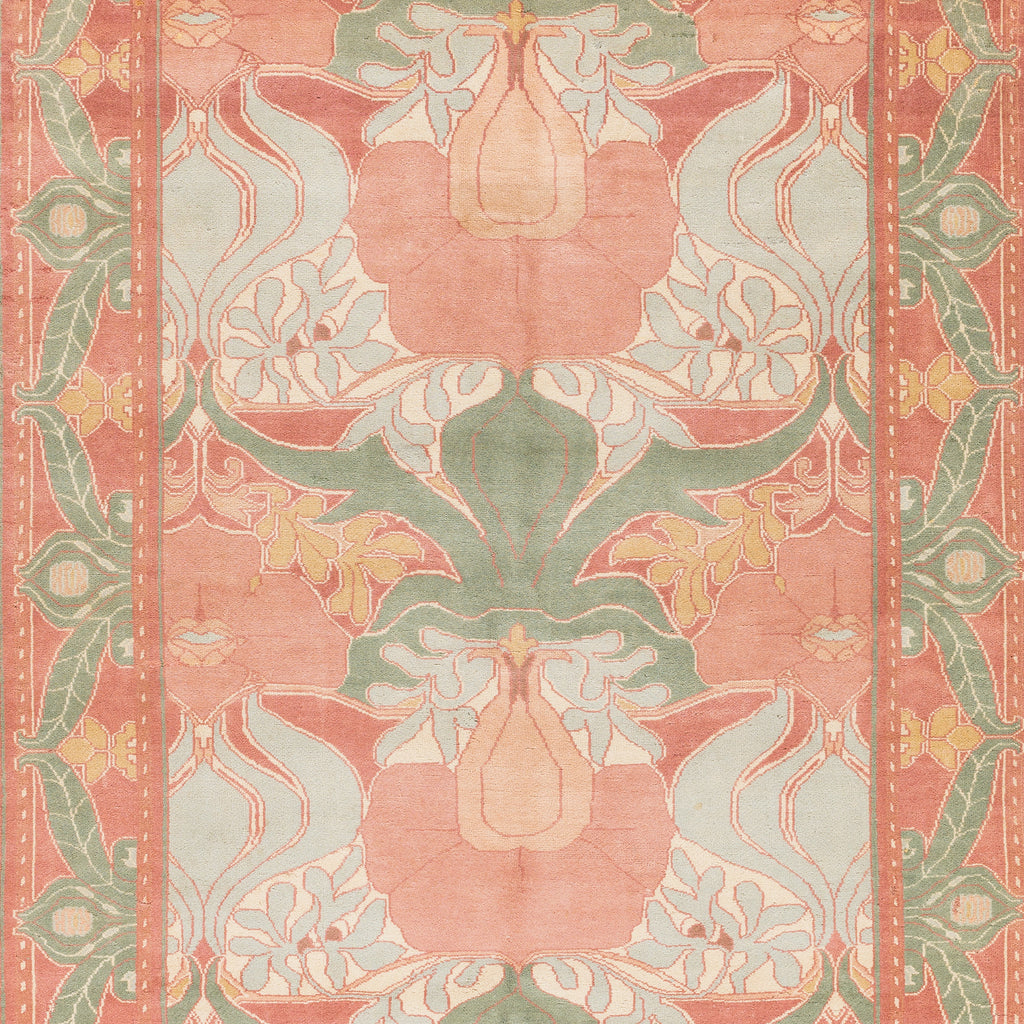 Most similar to the Sultanabads are Heriz and Serapi rugs; this similarity is attributed to the designs' magnificent graphic character. Yet within this similarity, Heriz/Serapis designs tend to be more curvilinear and classical. Sultanabads share with Persian rugs all-over designs of palmettes and vine scrolls, but as they use a larger, suppler weave, the Sultanabad designs tend to be larger.