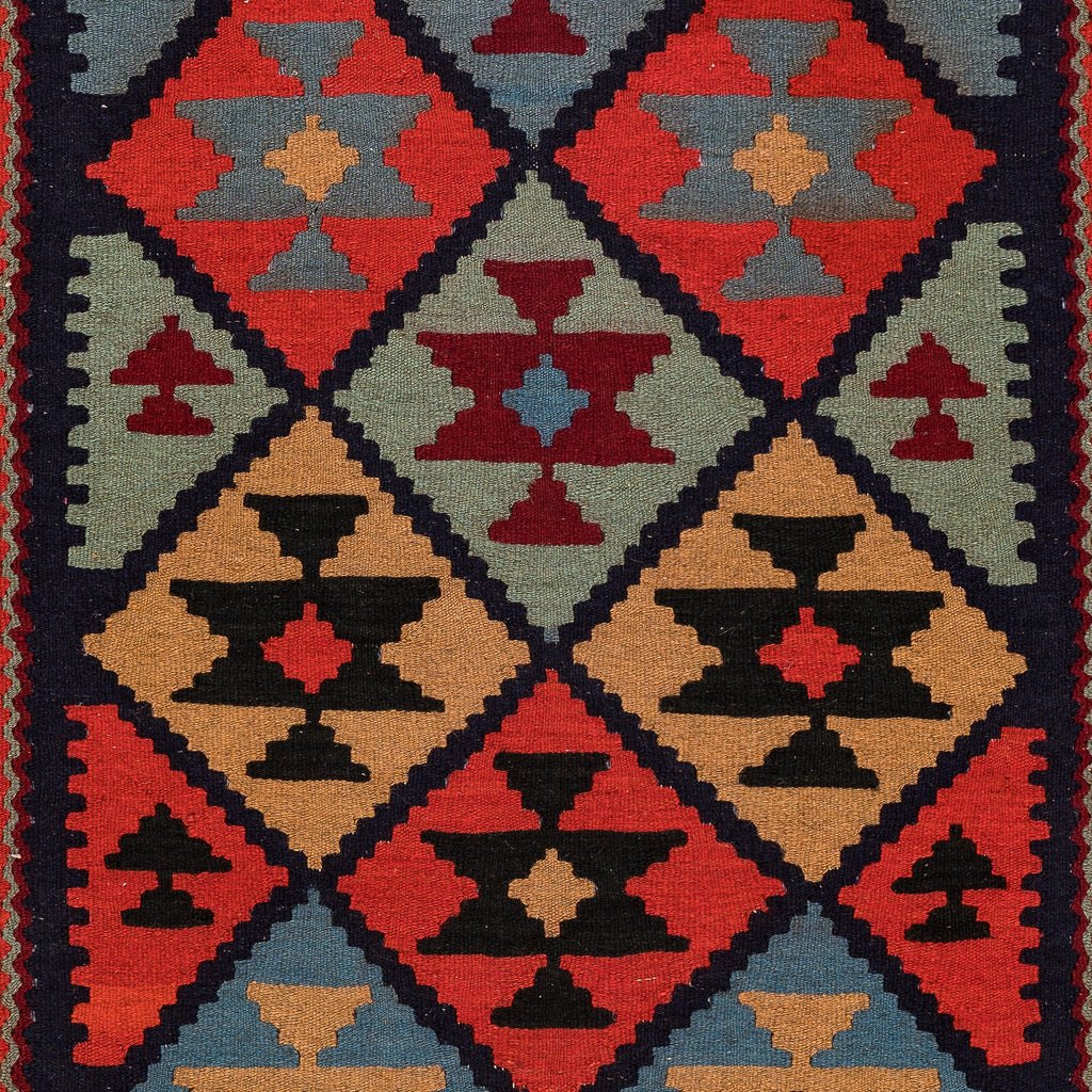 Inspired by Caucasian patterns, Ardebil Kilims are predominantly geometric in design, consisting of medallions, multiple connected diamond-shaped medallions, and all-over octagonal shapes.