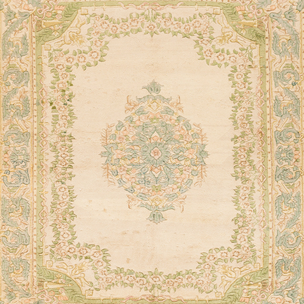 Most similar to the Sultanabads are Heriz and Serapi rugs; this similarity is attributed to the designs' magnificent graphic character. Yet within this similarity, Heriz/Serapis designs tend to be more curvilinear and classical. Sultanabads share with Persian rugs all-over designs of palmettes and vine scrolls, but as they use a larger, suppler weave, the Sultanabad designs tend to be larger.