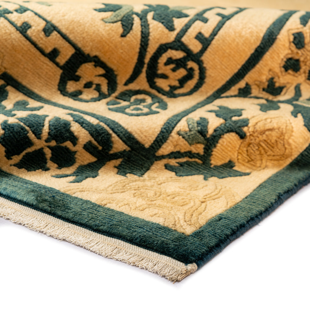 The Classical Chinese carpet has the unique ability to catch and reflect available light, which gives the fibers and colorful patterns a saturated yet translucent appearance. They are not only luxuriously smooth and soft but also possess exceptional strength and durability.