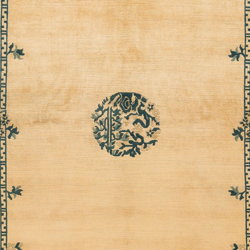 The designs on these Classical Chinese inspired carpets are taken from the patterns used by Chinese porcelain painters and artisans, which had been one of the favorite themes in Chinese crafts and paintings for centuries. The patterns also show old religious symbols with distinguished dragon patterns. The symbols on these carpets have Buddhistic origins, including clouds, floral designs, and ancient animals like dragons and phoenixes.