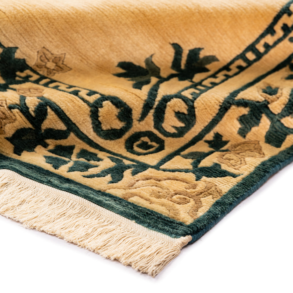 The Classical Chinese carpet has the unique ability to catch and reflect available light, which gives the fibers and colorful patterns a saturated yet translucent appearance. They are not only luxuriously smooth and soft but also possess exceptional strength and durability.