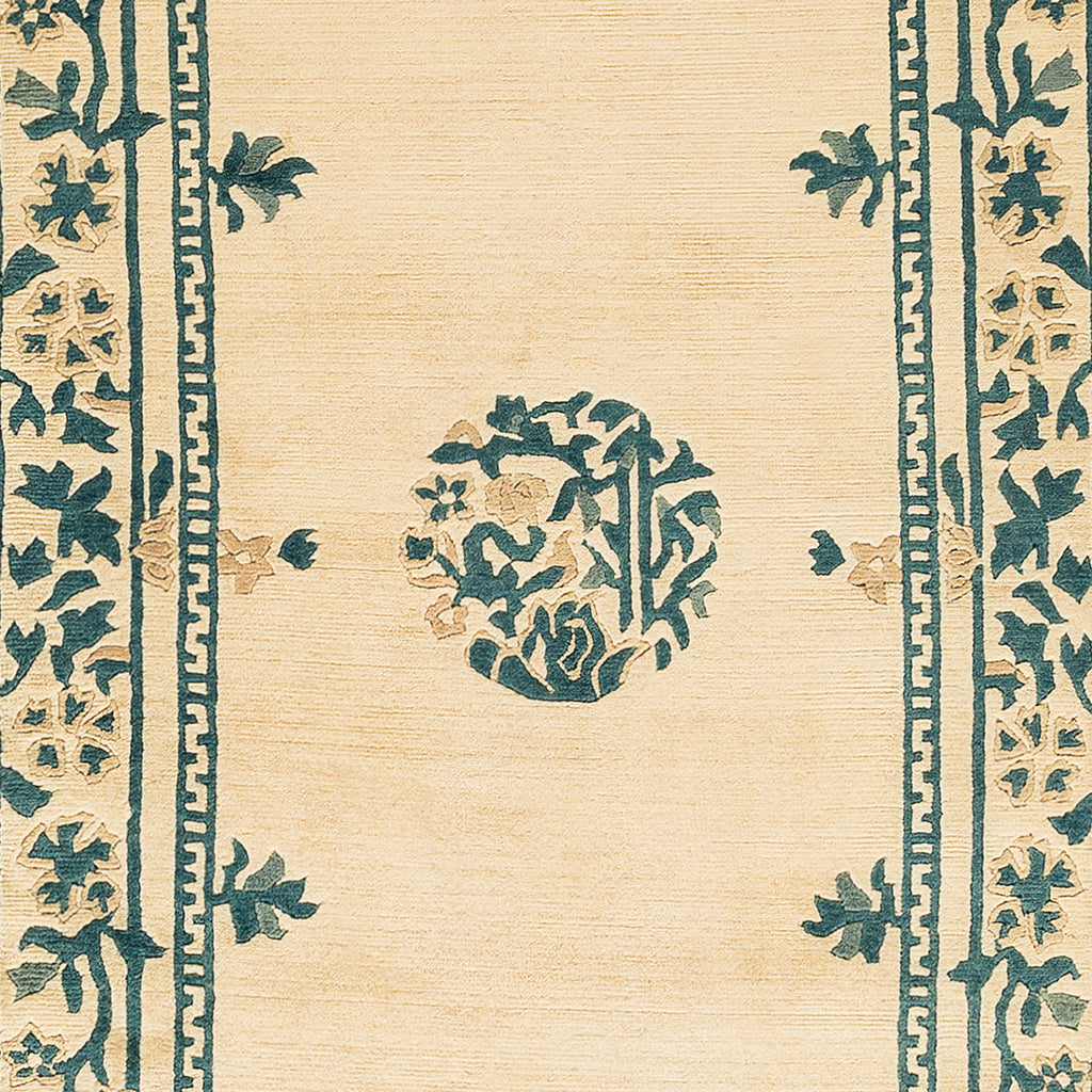 The designs on these Classical Chinese inspired carpets are taken from the patterns used by Chinese porcelain painters and artisans, which had been one of the favorite themes in Chinese crafts and paintings for centuries. The patterns also show old religious symbols with distinguished dragon patterns. The symbols on these carpets have Buddhistic origins, including clouds, floral designs, and ancient animals like dragons and phoenixes.