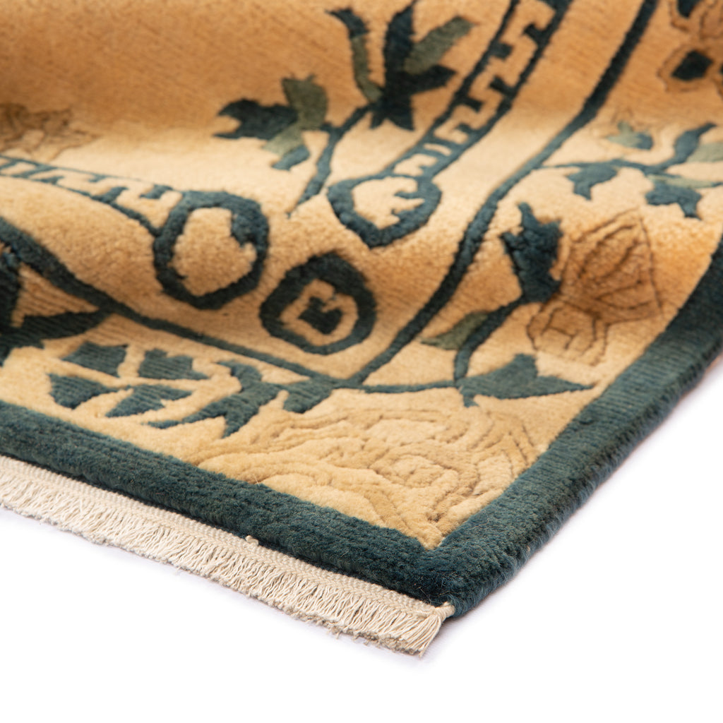 The Classical Chinese carpet has the unique ability to catch and reflect available light, which gives the fibers and colorful patterns a saturated yet translucent appearance. They are not only luxuriously smooth and soft but also possess exceptional strength and durability.
