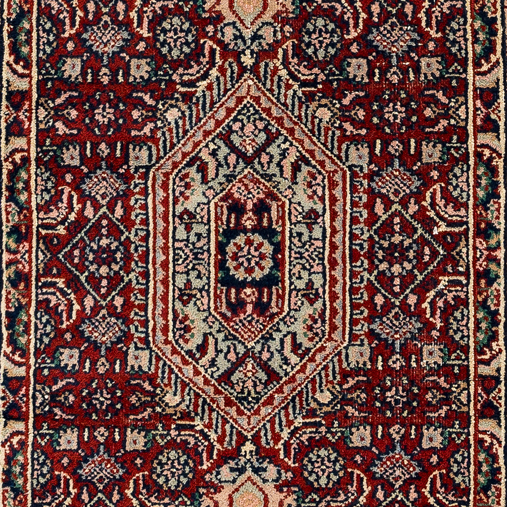 Most similar to the Sultanabads are Heriz and Serapi rugs; this similarity is attributed to the designs' magnificent graphic character. Yet within this similarity, Heriz/Serapis designs tend to be more curvilinear and classical. Sultanabads share with Persian rugs all-over designs of palmettes and vine scrolls, but as they use a larger, suppler weave, the Sultanabad designs tend to be larger.