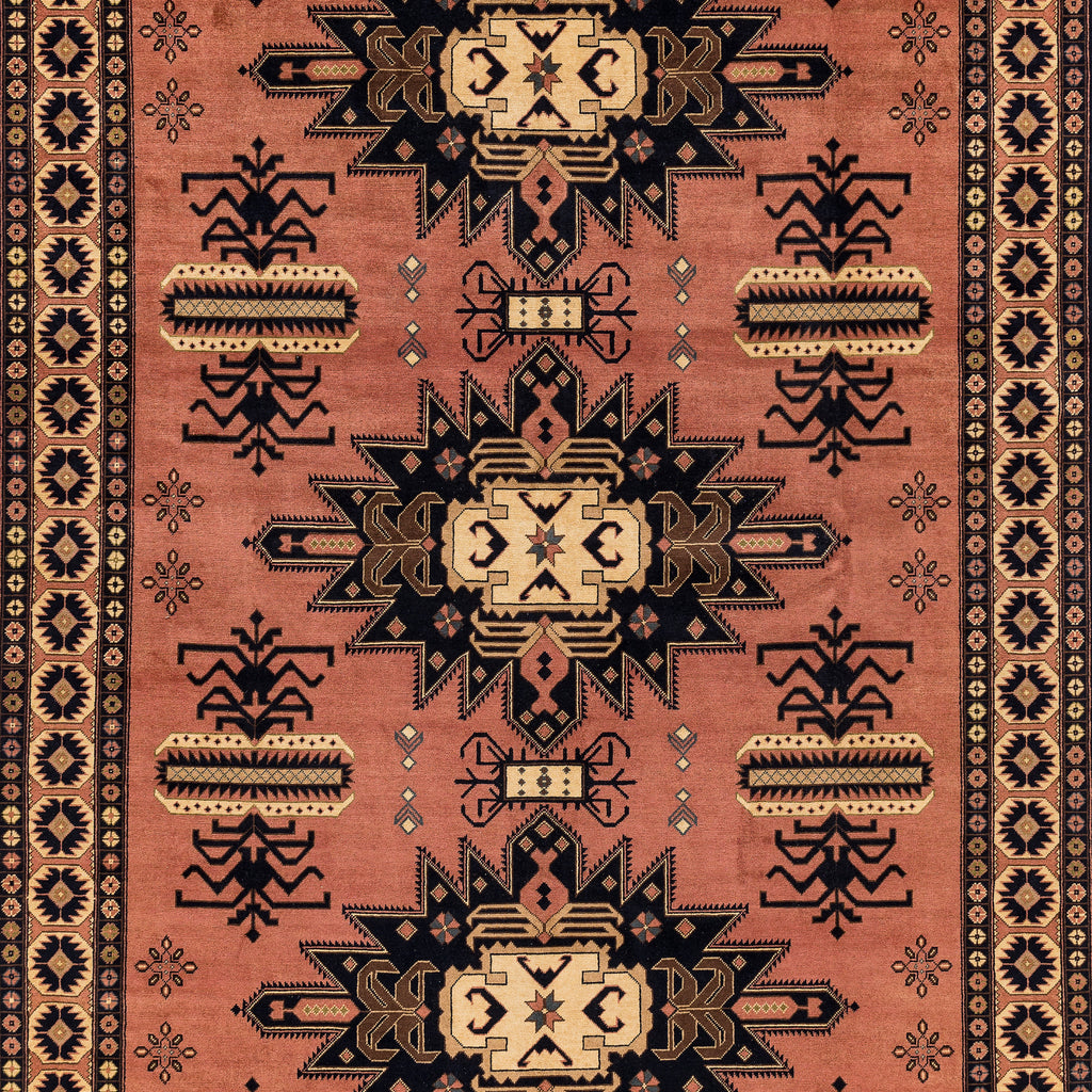 Uzbek inspired carpet designs mainly consist of shamanistic symbols and motifs such as the equilateral cross (unification of the spiritual and material), eight-pointed star, zoomorphic symbols, plant motifs symbolizing fertility.