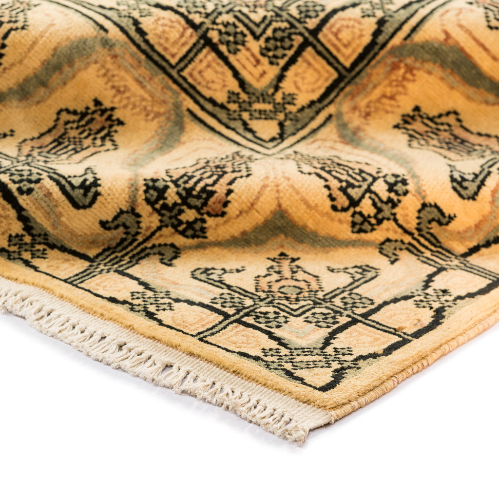 Uzbek inspired carpet designs mainly consist of shamanistic symbols and motifs such as the equilateral cross (unification of the spiritual and material), eight-pointed star, zoomorphic symbols, plant motifs symbolizing fertility.